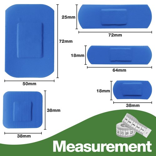 - Individually wrapped sterile blue plasters with detectable metal strip - Assorted sizes