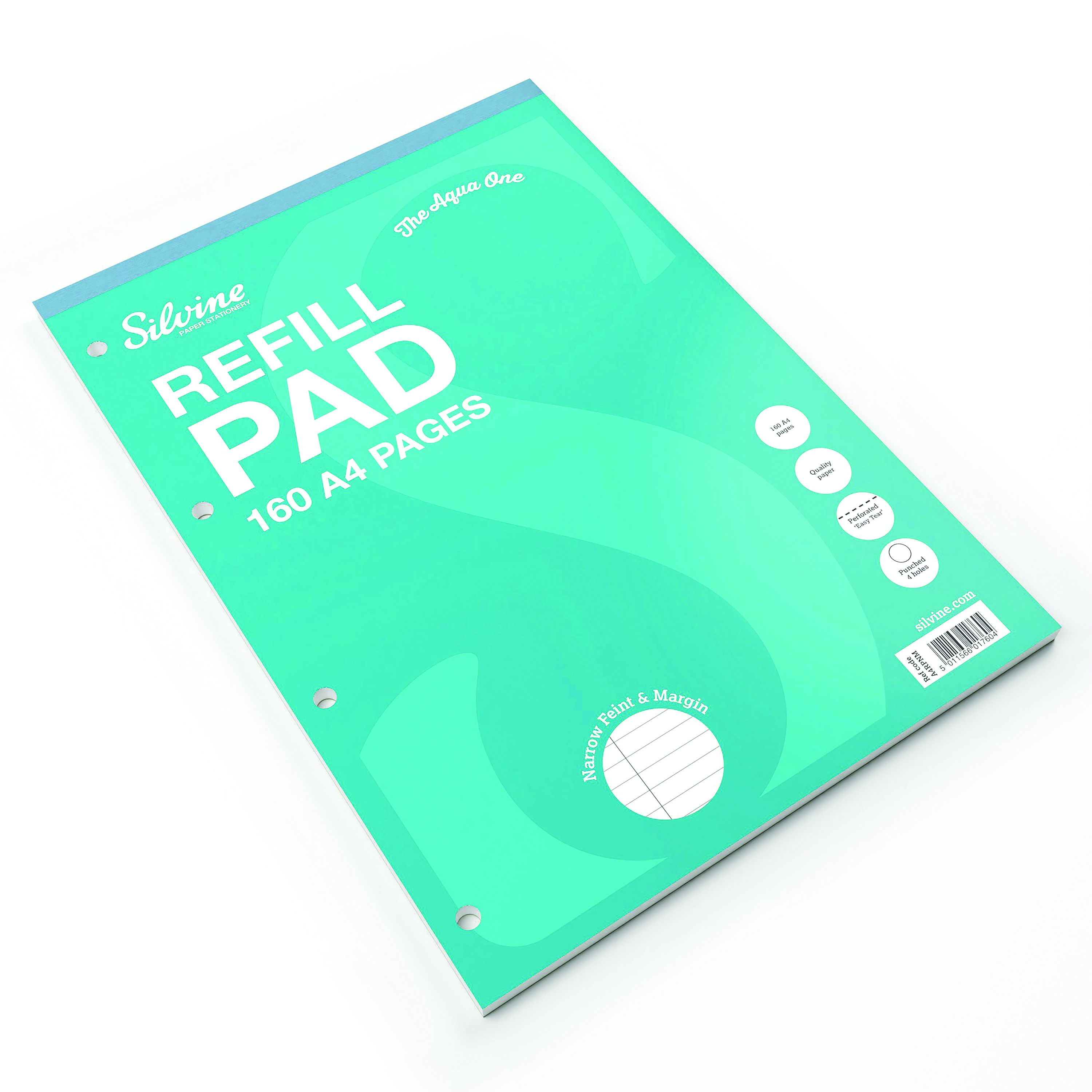 This Silvine Refill Pad contains 160 pages of quality paper. The pad is headbound with perforated pages and four-hole punching for easily removing notes and filing into standard lever arch files and ring binders. The pages are narrow feint ruled with a margin for neat note-taking. This pack contains 6 x A4 refill pads.